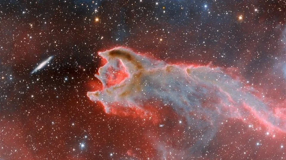 This week’s astronomy photo is CG4: The Globule and The Galaxy from the NASA Astronomy Photo of the Day. The globule in this picture is a massive cloud of cosmic dust that will eventually form stars.