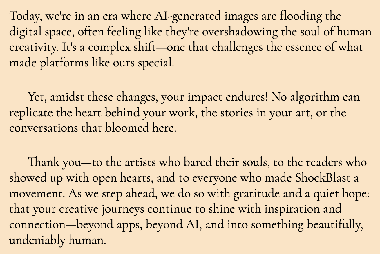 When ever the site who started to mostly be known for posting video game and party photos is lamenting the loss of humanity in the face of generative AI you know it’s not good.